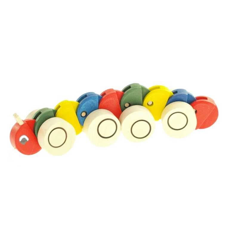 Nachziehspielzeug aus Holz - Raupe bunt